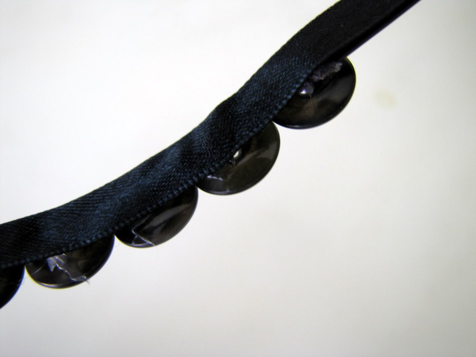 Now that have finished gluing down your buttons we need to add the ribbon to keep the buttons and glue from sticking to your hair. I suggest using a ribbon in a similar color as your buttons. Also, make sure your ribbon is not wider than your buttons {you don’t want the ribbon to show}.