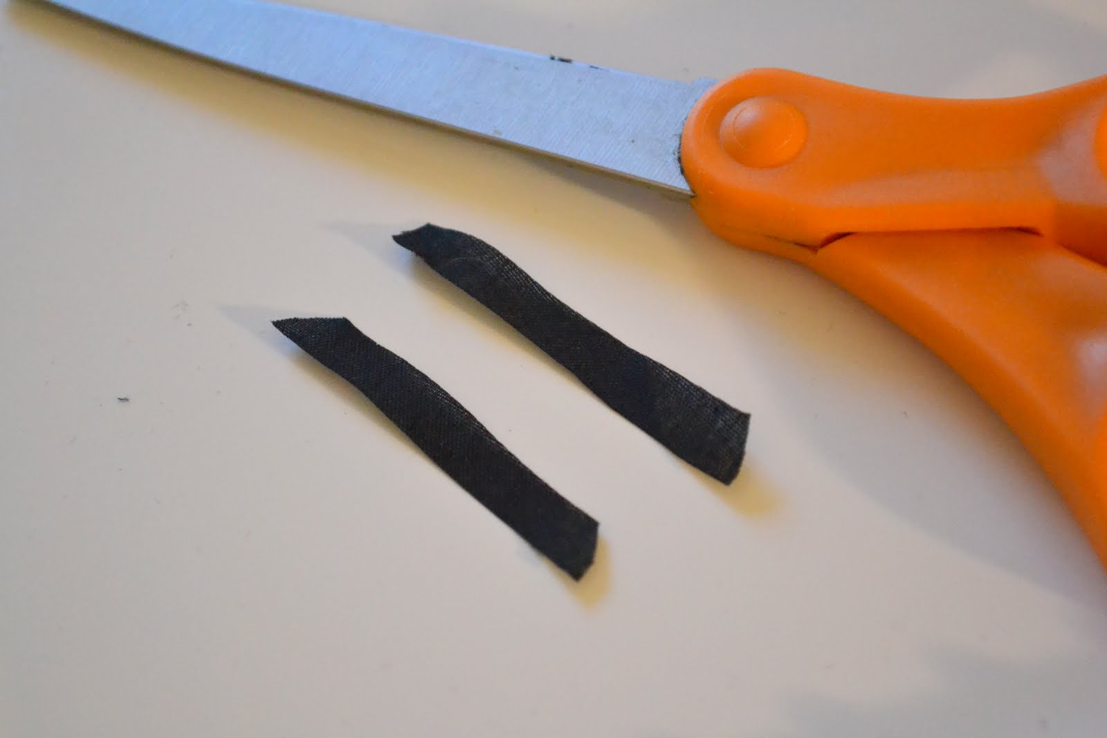 Take some fabric scrap and cut two strips about 1.5 inches long {no need to be exact here because you can always trim the excess later}.