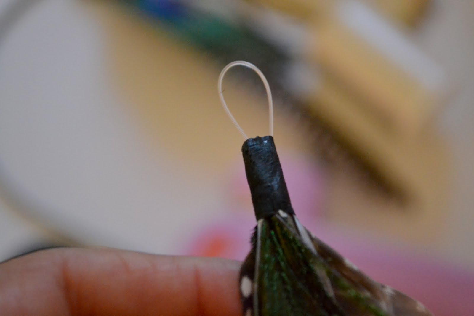 *I purchased my feathers at Joann’s and they were already finished on the ends with a clear thread loop. The brand is Touch of Nature.