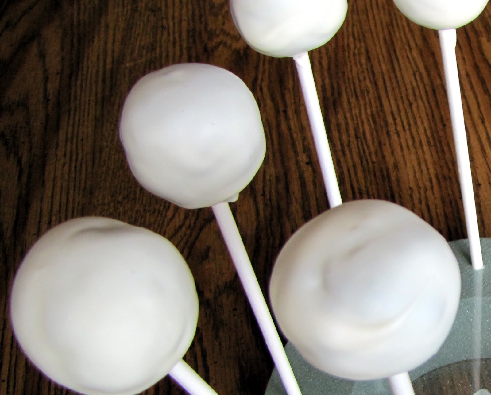 Take a cake pop and dip into the white chocolate about 1 inch.