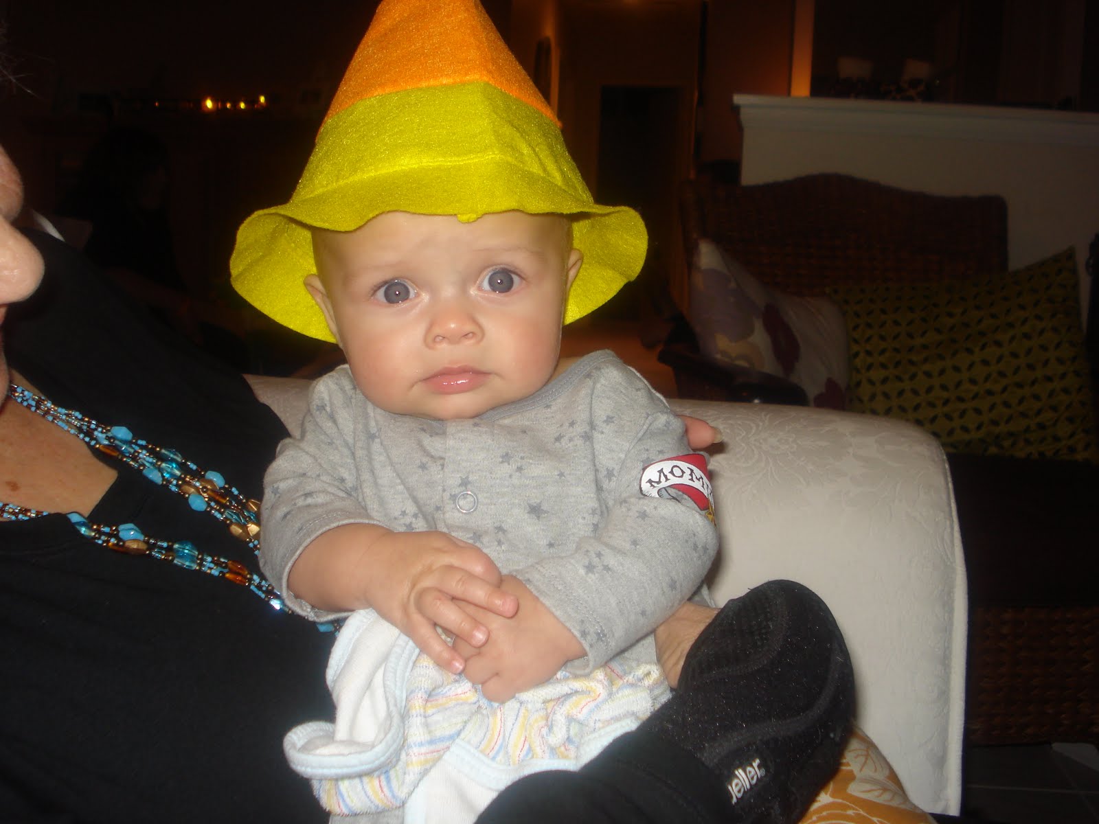 Later that night, I switched out the pumpkin hat for your candy corn hat {from the Target dollar section of course}.