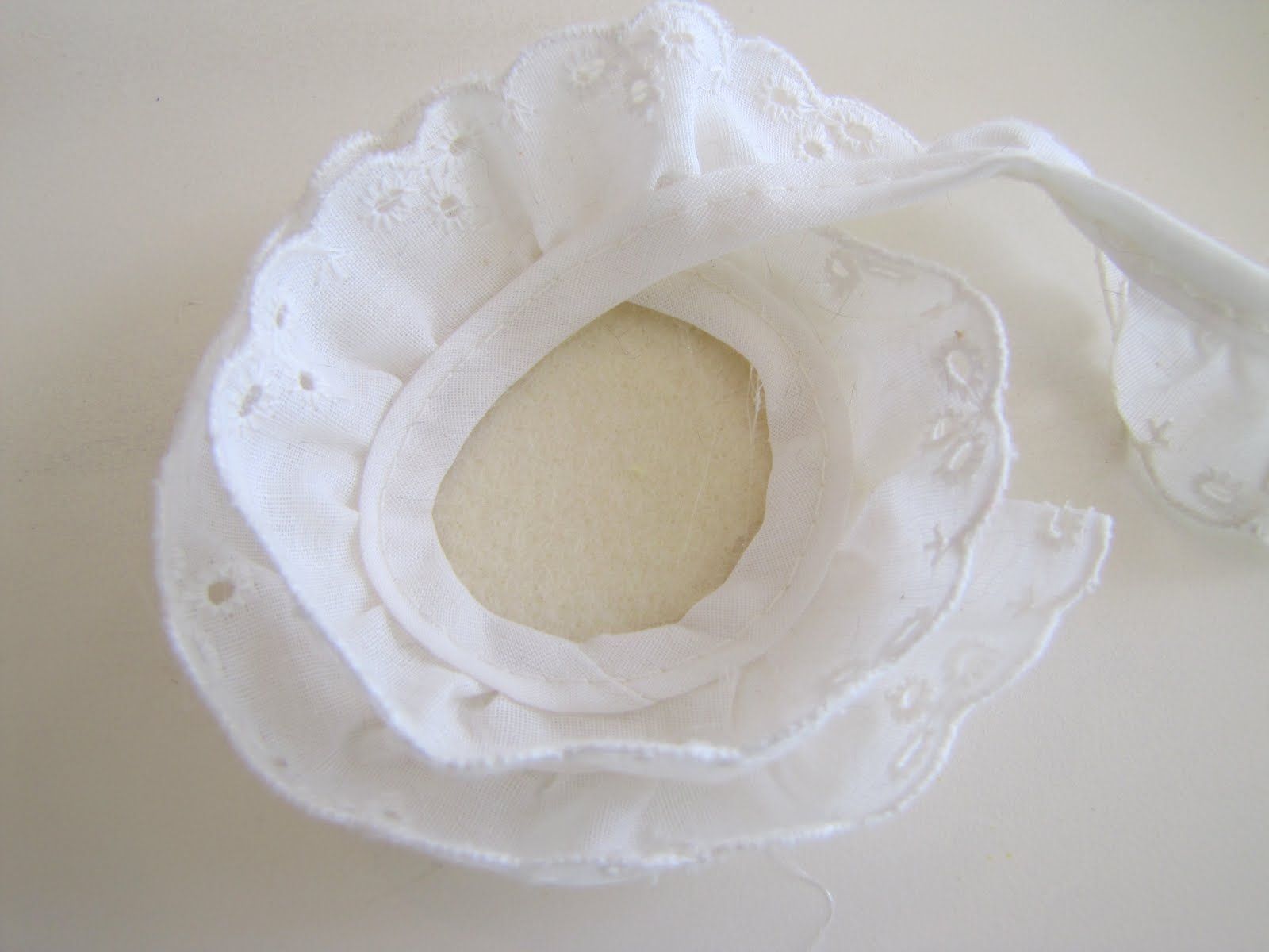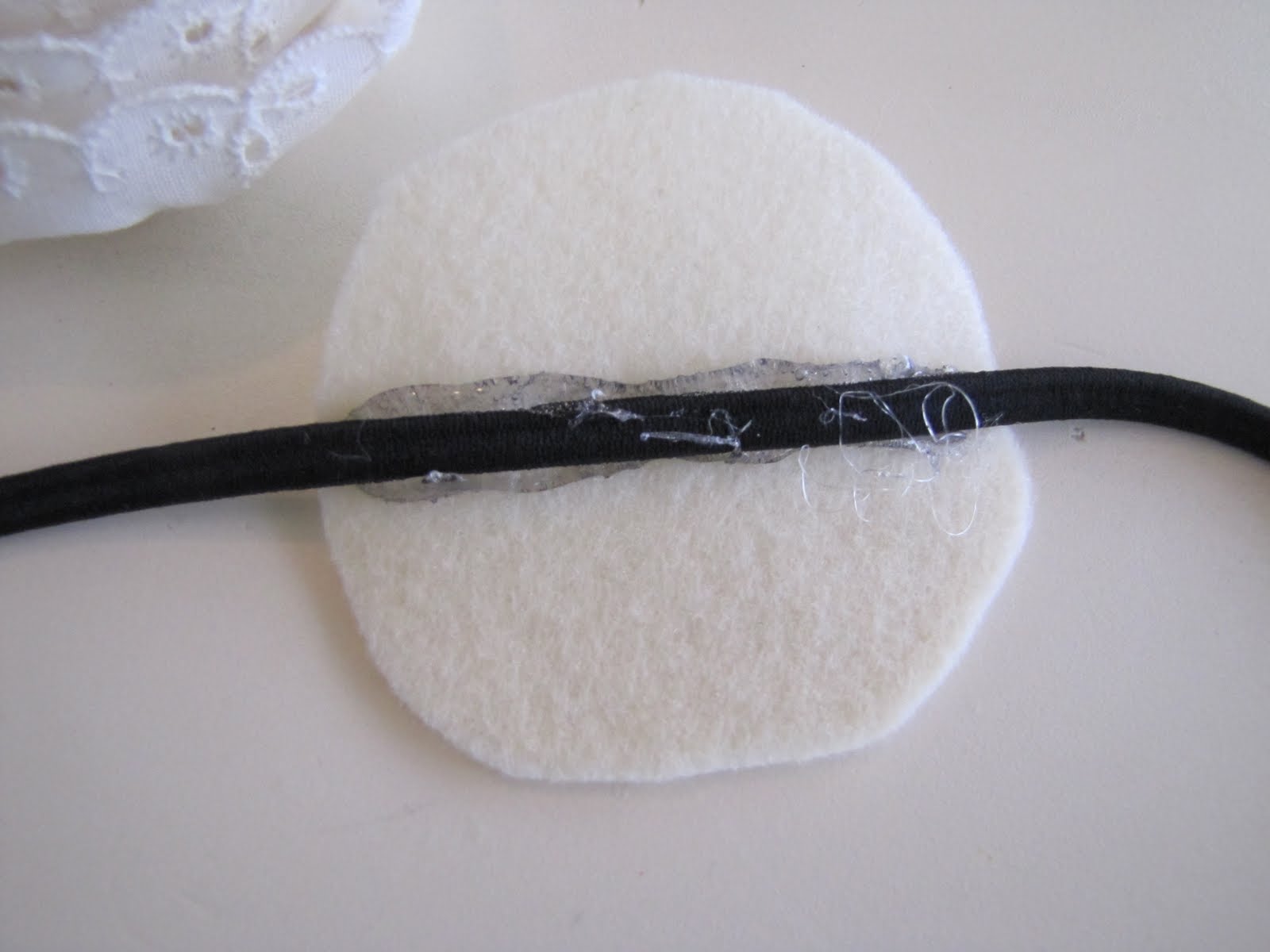 Glue down your embellishment {I used a pearl} to cover the raw edge/end of your lace.