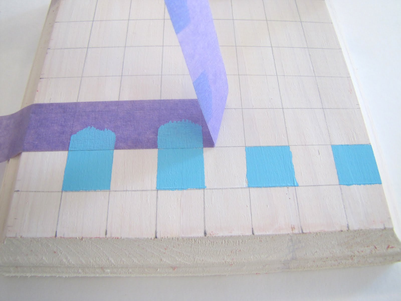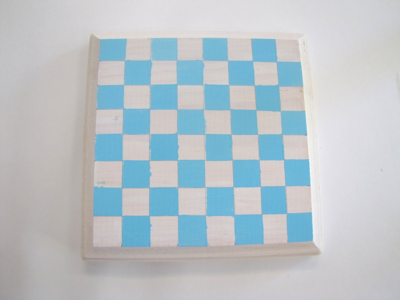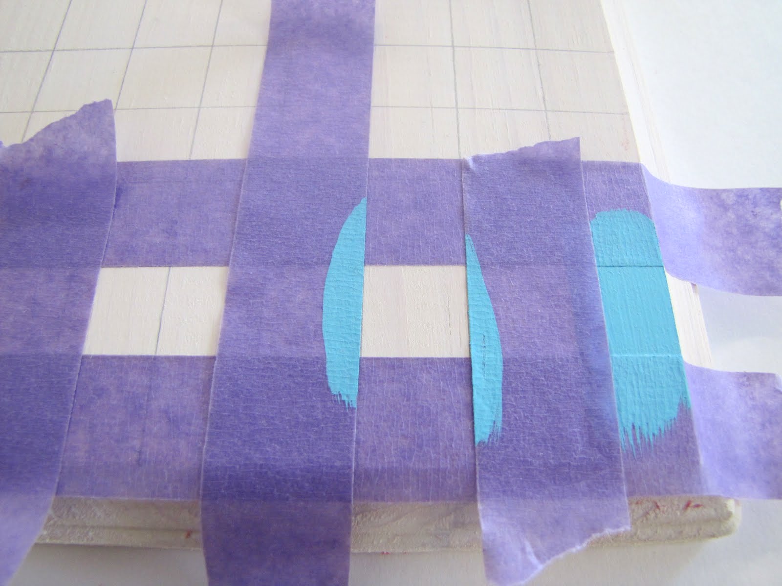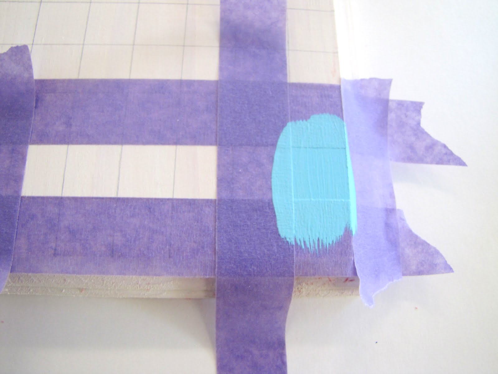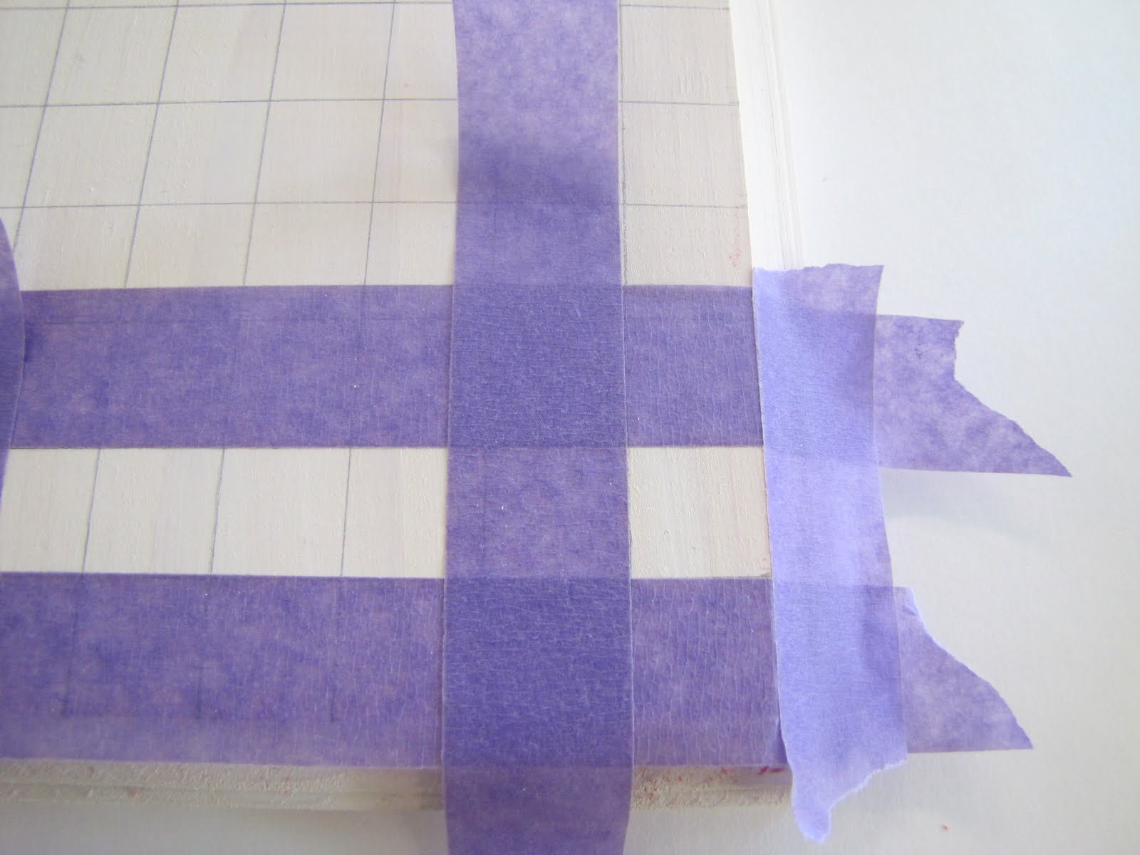Once you have all your grid lines marked off you are ready to begin painting your squares. In order to get straight lines you will need to tape off each box with painter’s tape.