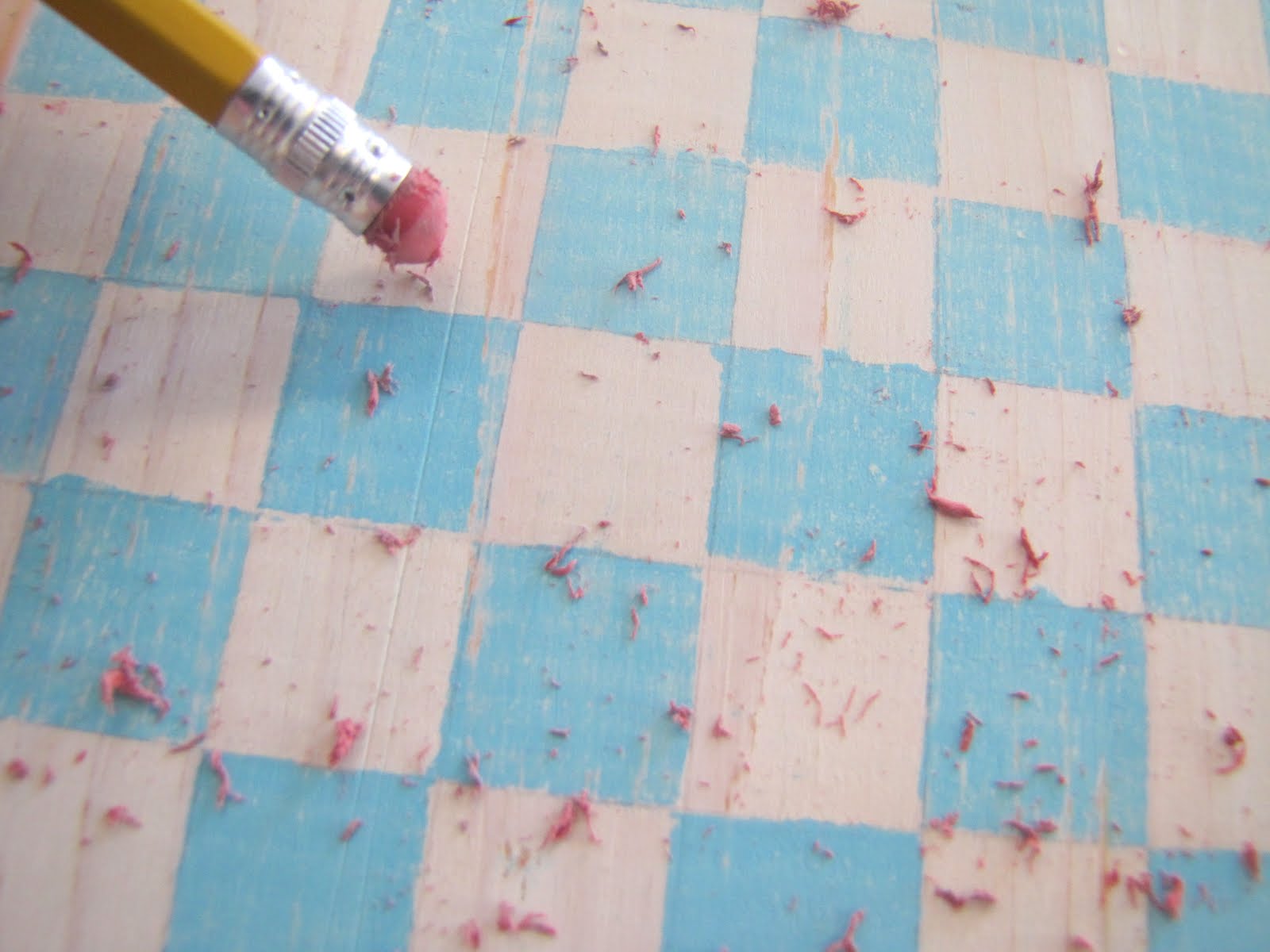 Go over the checker board with the sand paper again to remove the excess eraser goopies.