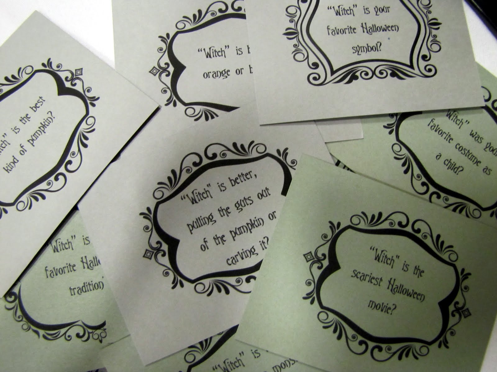 Dinner conversation starters at every place setting {all Witch themed}